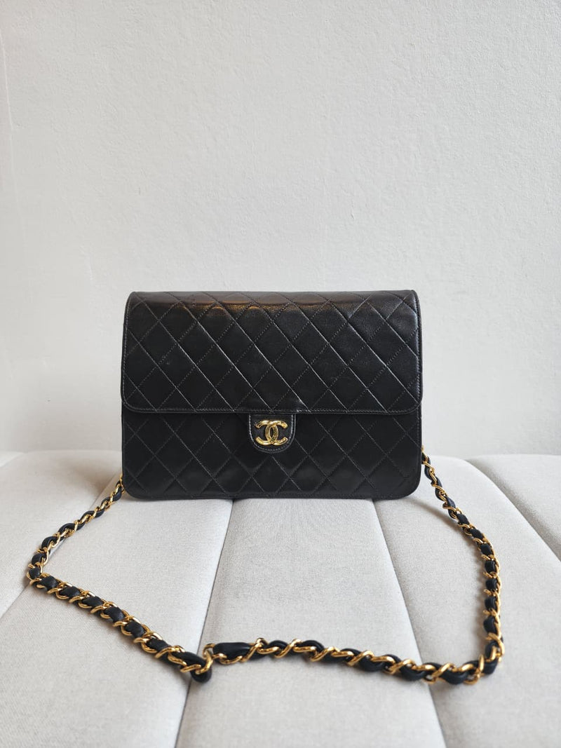 Matelasse Single Flap Shoulder Bag Black