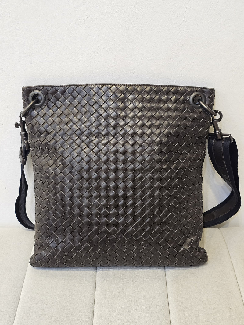 Nappa Intrecciato Flat Dark Brown Messenger Bag